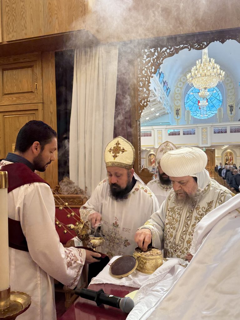 وقد شارك في القداس الإلهي القمص كيرلس ًوسيلي، والآباء الكهنة: أنجيلوس جرجس وفيلوباتير حنا، والأرشدياكون أرساني سيداروس، والشماس ونس عطية.
