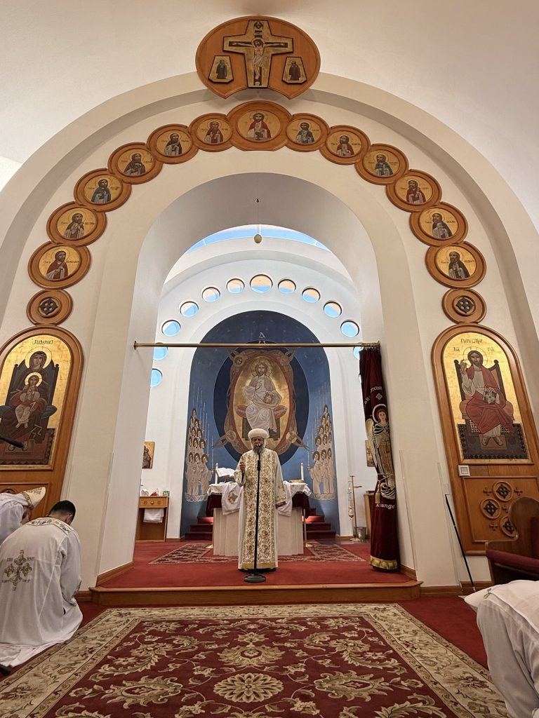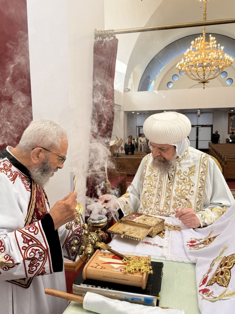 شارك في القداس الإلهي القمص فليمون ميخائيل، والقمص يوحنا إبراهيم، والقس مارك حنا، والقس ديفيد بنيامين، و الأرشيدياكون ميخائيل عشم الله